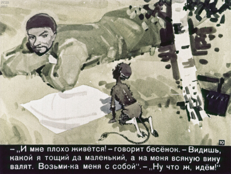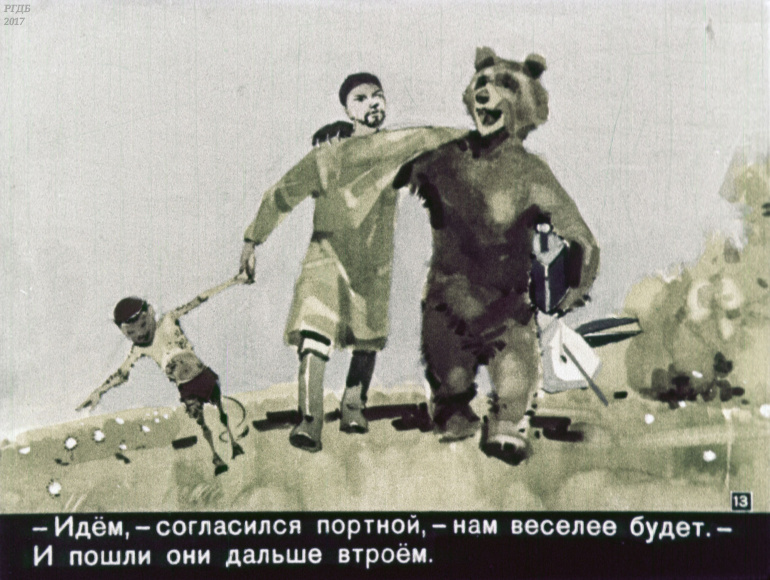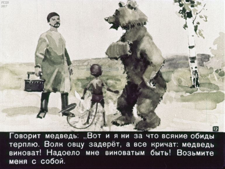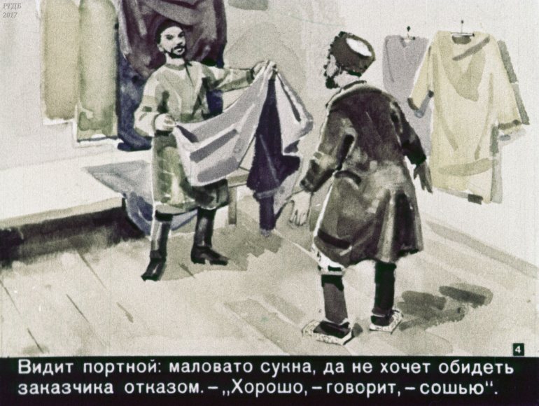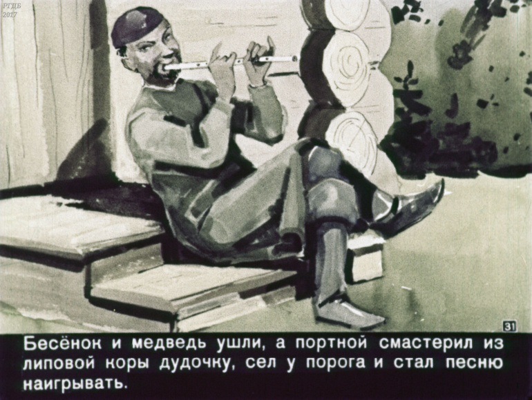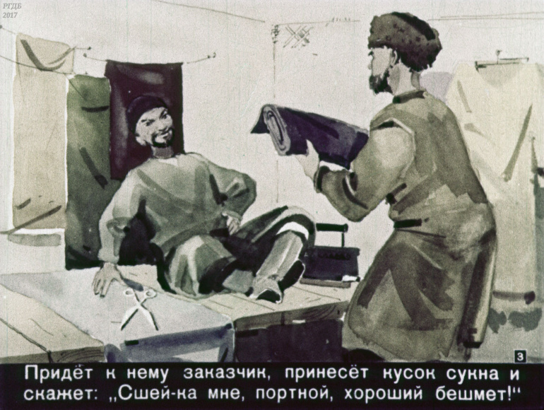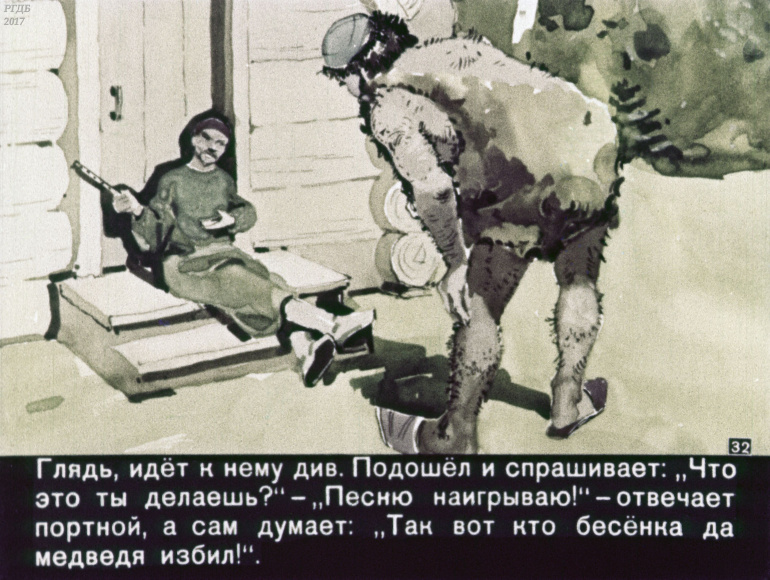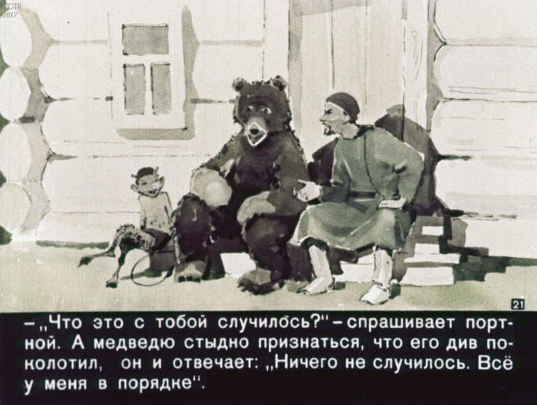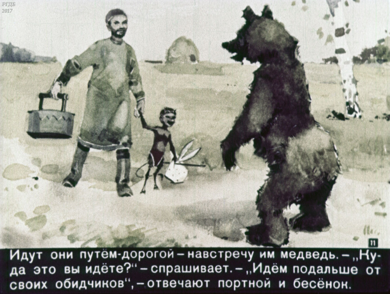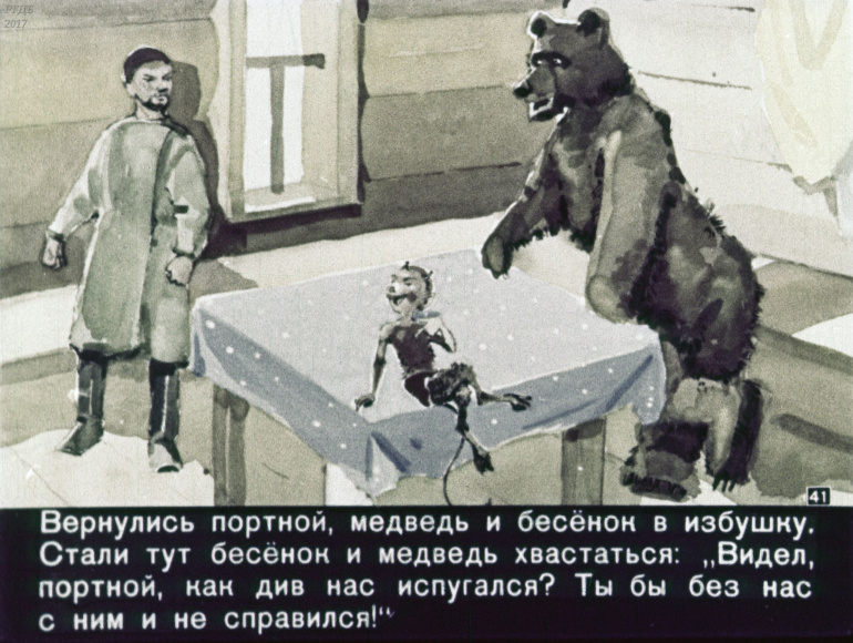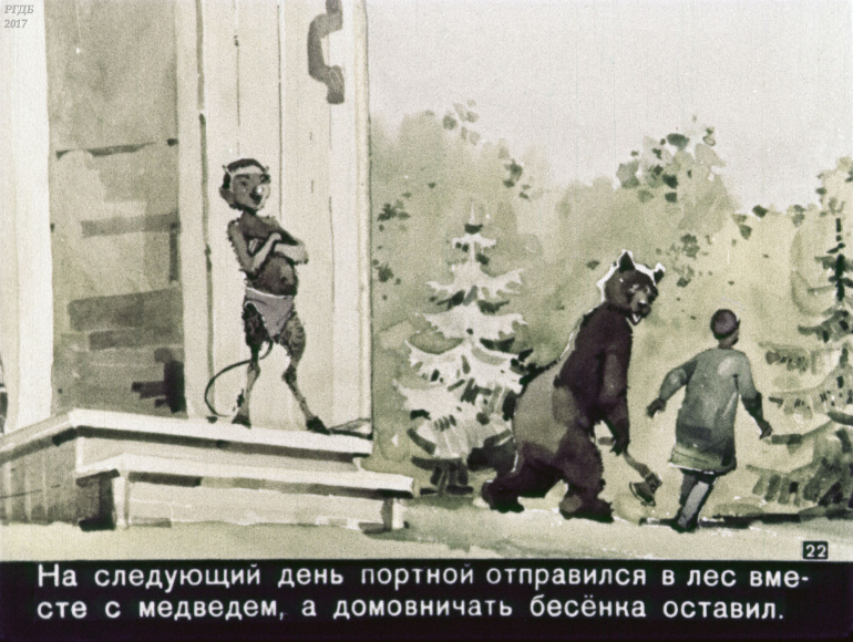 Портной, бесёнок и медведь 1 Категория: ДиафильмыПросмотры: 375 Диафильм "Портной, бесёнок и медведь". Татарская сказкаСтудия "Диафильм" Госкино СССР, 1960 год. Д-305-60, цветной 0-30 копеек