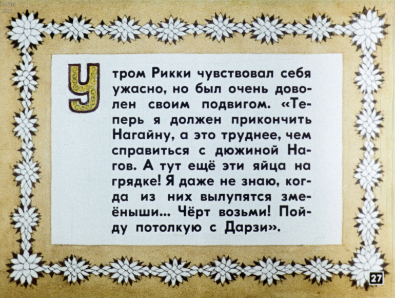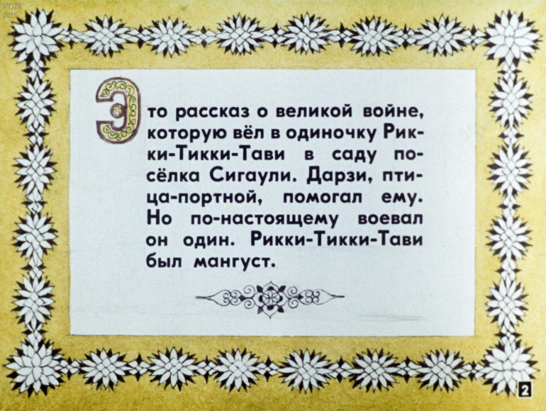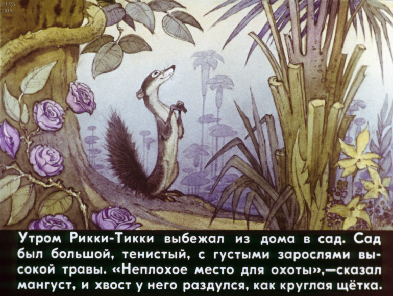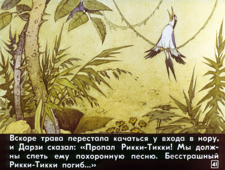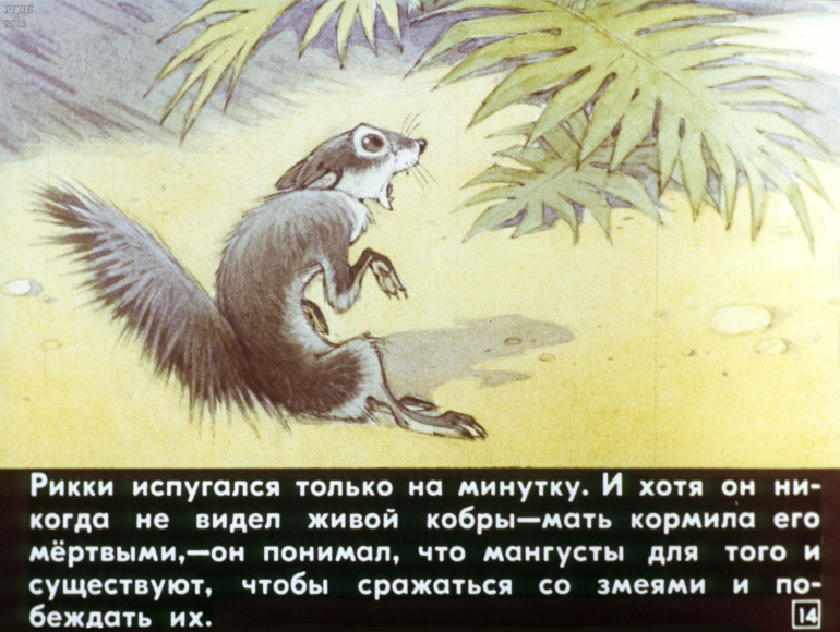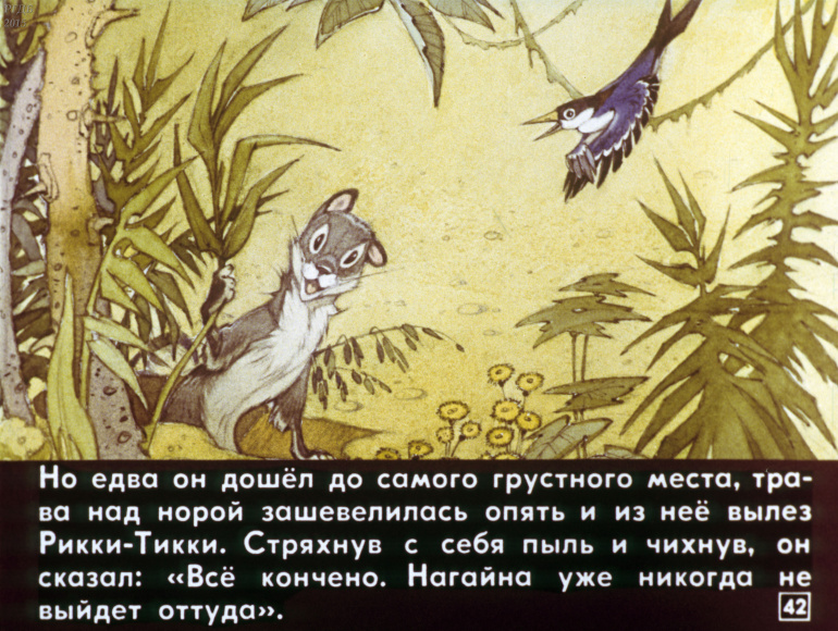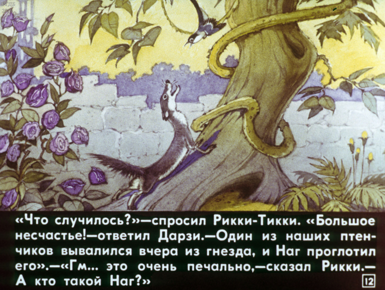 Рикки-Тикки-Тави 7 Категория: ДиафильмыПросмотры: 707 Редьярд Киплинг. Диафильм "Рикки-Тикки-Тави".Студия "Диафильм" Госкино СССР, 1990 год. Д-053-90, цветной 0-80 копеек