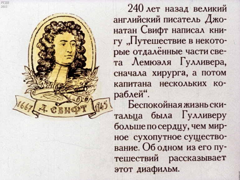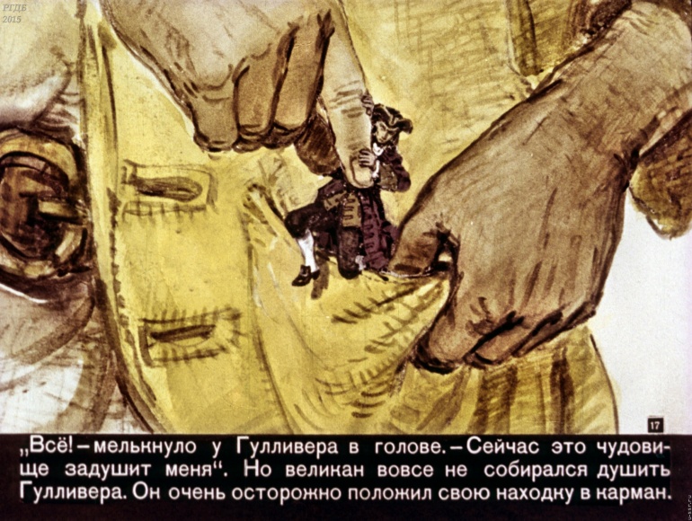 Гулливер в стране великанов 15 Категория: ДиафильмыПросмотры: 2 363 Джонатан Свифт. Диафильм "Гулливер в стране великанов".Студия "Диафильм" Госкино СССР, 1967 год. Д-198-67, цветной 0-30 копеек