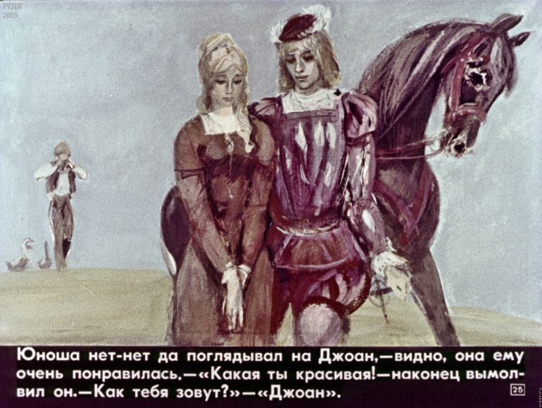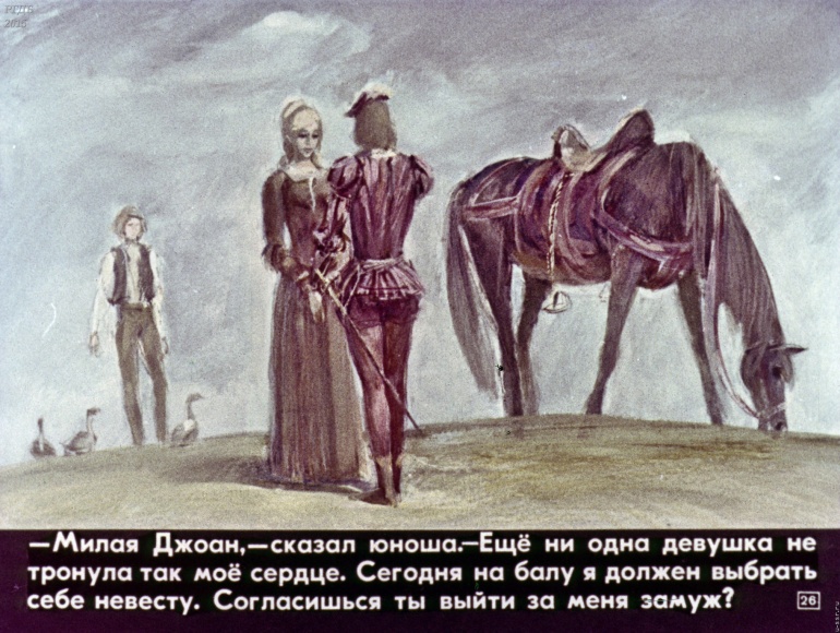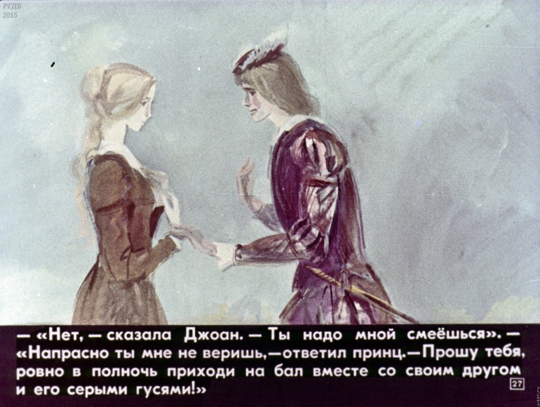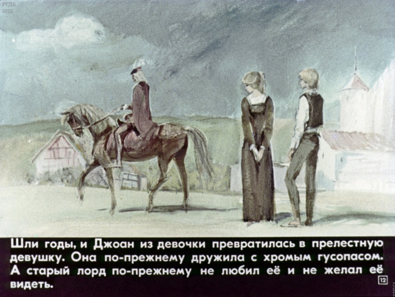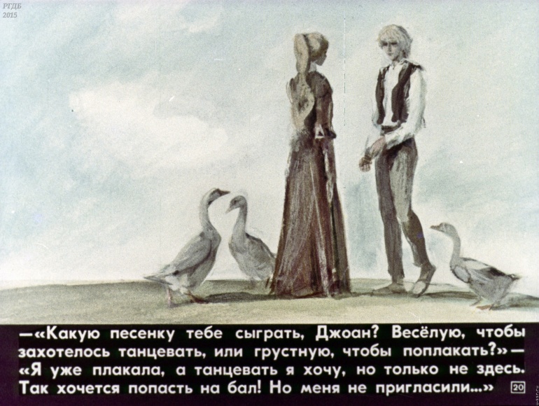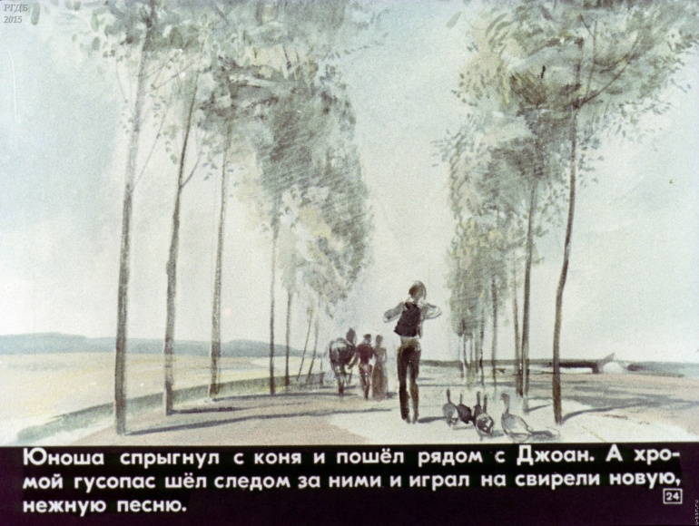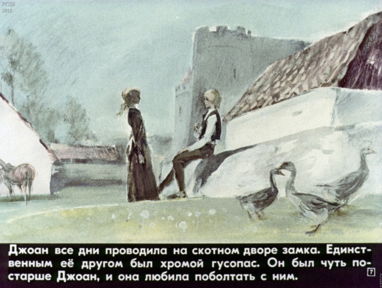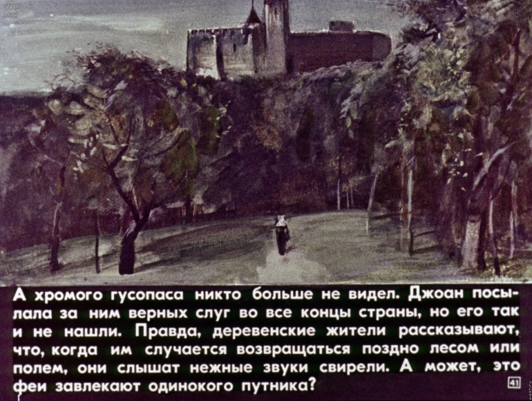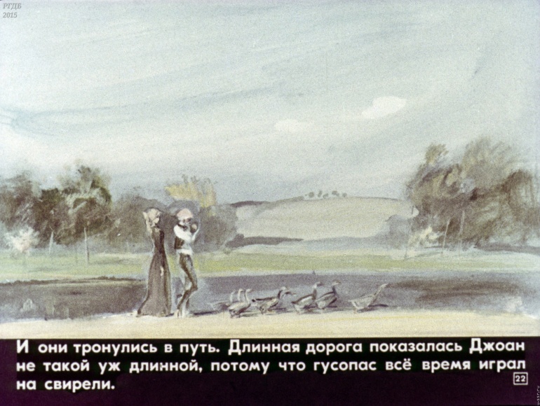 Джоан и Хромой гусопас 1 Категория: ДиафильмыПросмотры: 1 329 Диафильм "Джоан и Хромой гусопас". Английская народная сказкаСтудия "Диафильм" Госкино СССР, 1974 год. Д-009-75, цветной 0-30 копеек