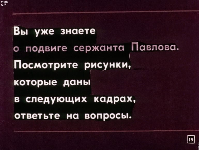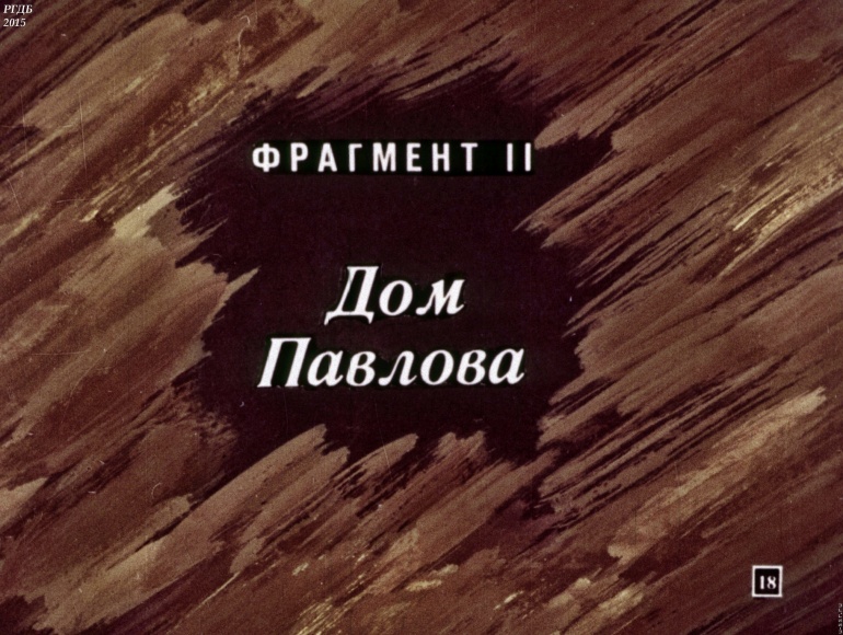 Дом Павлова 0 Категория: ДиафильмыПросмотры: 1 689 Диафильм "Дом Павлова".Студия "Диафильм" Госкино СССР, 1975 год. Д-267-75, цветной 0-30 копеек