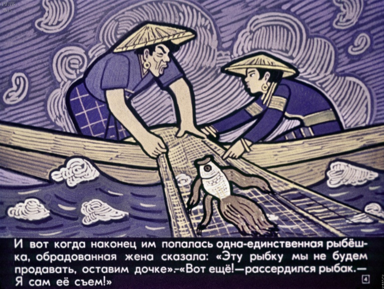 Дочь рыбака 0 Категория: ДиафильмыПросмотры: 1 739 Диафильм "Дочь рыбака". Бирманская сказкаСтудия "Диафильм" Госкино СССР, 1978 год. Д-002-78, цветной 0-30 копеек