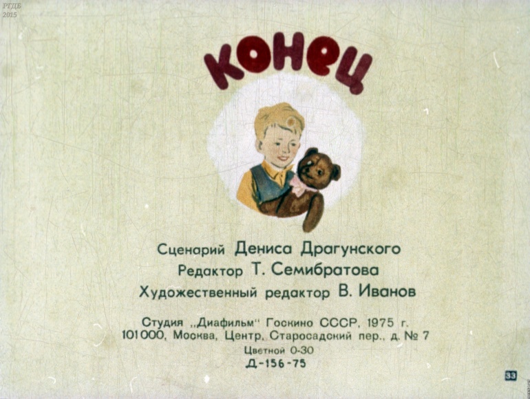Друг детства 21 Категория: ДиафильмыПросмотры: 3 729 В. Драгунский. Диафильм "Друг детства". Студия "Диафильм" Госкино СССР, 1975 год. Д-156-75, цветной 0-30 копеек