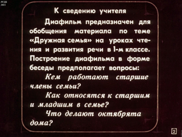 Дружная семья 0 Категория: ДиафильмыПросмотры: 1 269 Диафильм "Дружная семья". Студия "Диафильм" Госкино СССР, 1980 год. Д-082-80, цветной 0-30 копеек