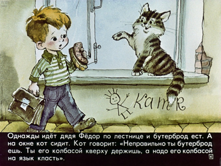 Дядя Фёдор, пес и кот 5 Категория: ДиафильмыПросмотры: 2 495 Э. Успенский. Диафильм "Дядя Фёдор, пес и кот". Студия "Диафильм" Госкино СССР, 1972 год. Д-006-73, цветной 0-30 копеек