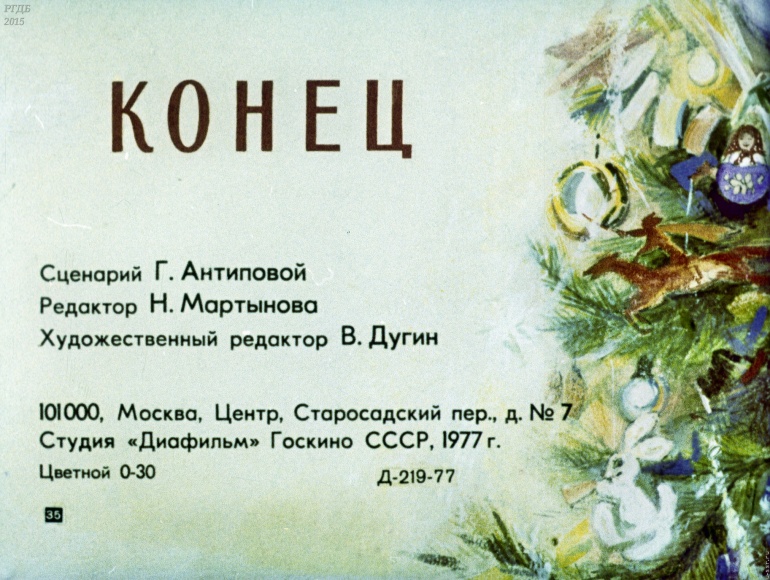 Елка в Сокольниках 0 Категория: ДиафильмыПросмотры: 1 671 А. Кононов. Диафильм "Елка в Сокольниках".Студия "Диафильм" Госкино СССР, 1977 год. Д-219-77, цветной 0-30 копеек