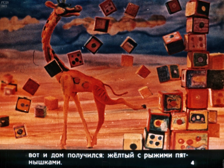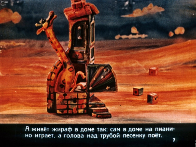 Жираф 0 Категория: ДиафильмыПросмотры: 1 393 Диафильм "Жираф".Студия "Диафильм" Госкино СССР, 1976 год. Д-72-76, цветной 0-30 копеек