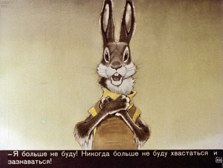 Зайка-зазнайка 0 Категория: ДиафильмыПросмотры: 1 948 С. Михалков. Диафильм "Зайка-зазнайка".Студия "Диафильм" Госкино СССР, 1971 год. Д-398-71, цветной 0-30 копеек