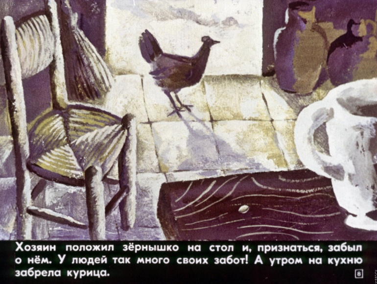 Зернышко 1 Категория: ДиафильмыПросмотры: 1 297 Диафильм "Зернышко". Французская народная сказкаСтудия "Диафильм" Госкино СССР, 1979 год. Д-114-79, цветной 0-30 копеек