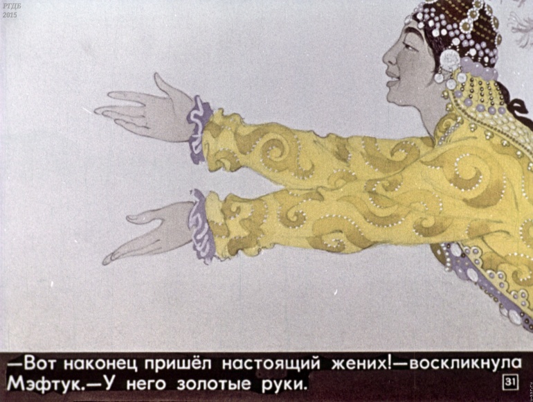 Золотые руки 0 Категория: ДиафильмыПросмотры: 2 332 Диафильм "Золотые руки". Башкирская сказка Студия "Диафильм" Госкино СССР, 1974 год. Д-137-74, цветной 0-30 копеек