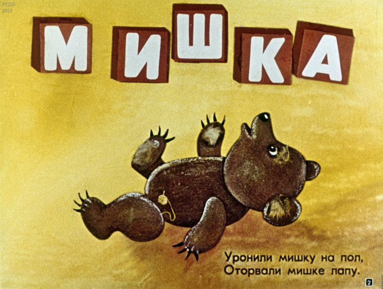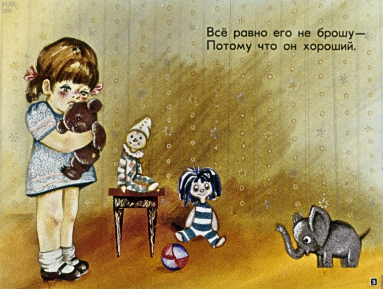 Игрушки 1 Категория: ДиафильмыПросмотры: 2 567 А. Барто. Диафильм "Игрушки". Студия "Диафильм" Госкино СССР, 1977 год. Д-364-77, цветной 0-30 копеек