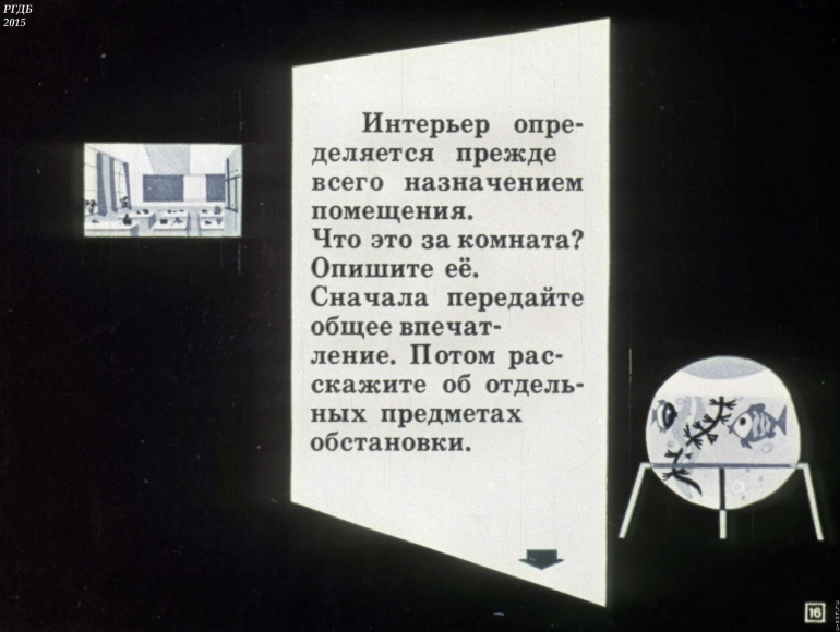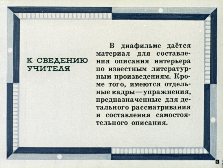Интерьер 0 Категория: ДиафильмыПросмотры: 1 304 Диафильм "Интерьер". Студия "Диафильм" Госкино СССР, 1976 год. Д-139-76, цветной 0-30 копеек