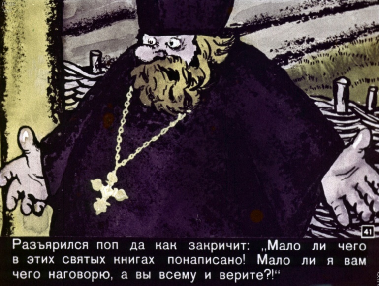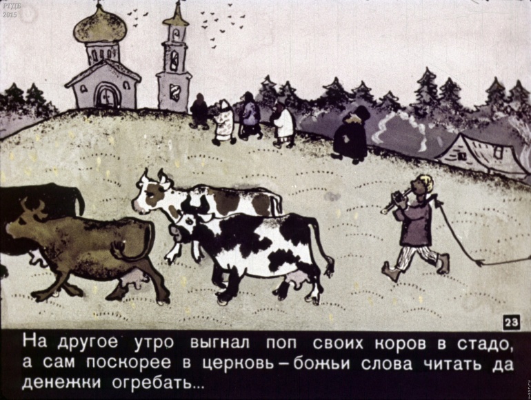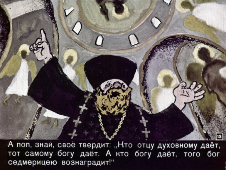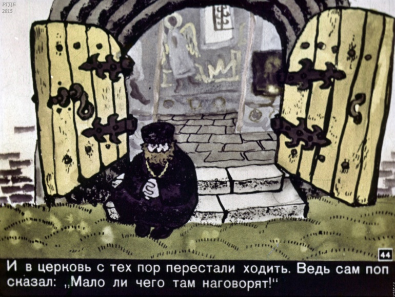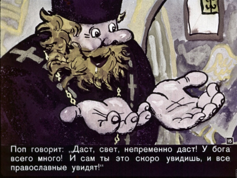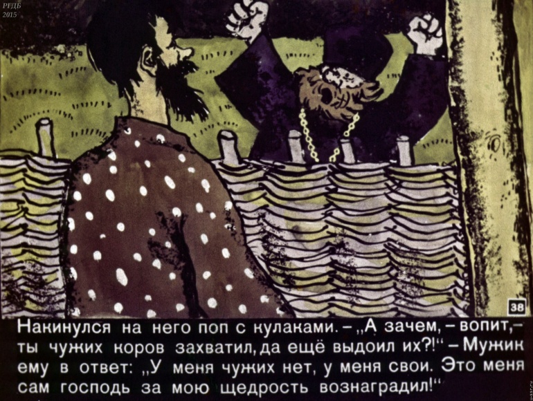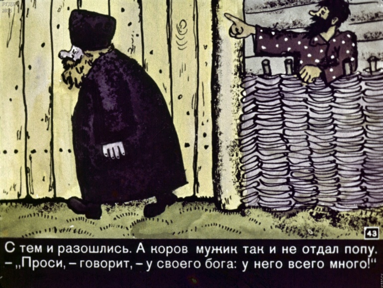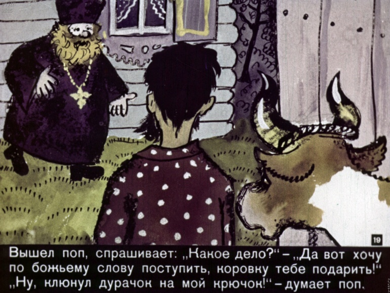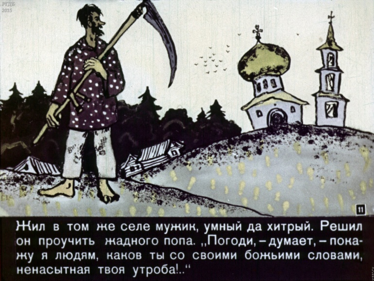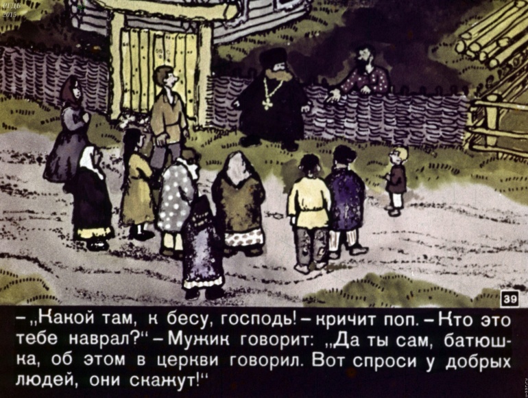 Как мужик попа проучил 0 Категория: ДиафильмыПросмотры: 2 258 Диафильм "Как мужик попа проучил". Русская сказкаСтудия "Диафильм" Госкино СССР, 1961 год. Д-441-61, цветной 0-30 копеек