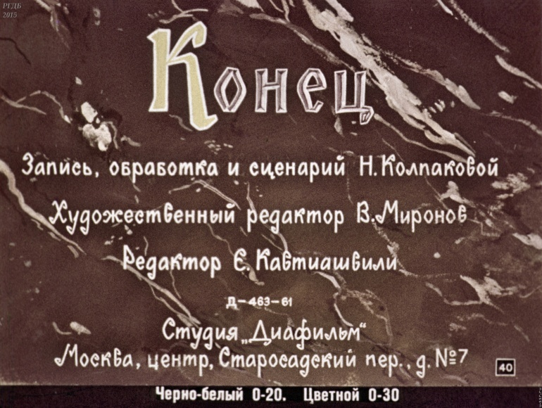 Каменная чаша 0 Категория: ДиафильмыПросмотры: 1 371 Диафильм "Каменная чаша". Русская народная сказка Студия "Диафильм" Госкино СССР, 1968 год. Д-463-61, цветной 0-30 копеек