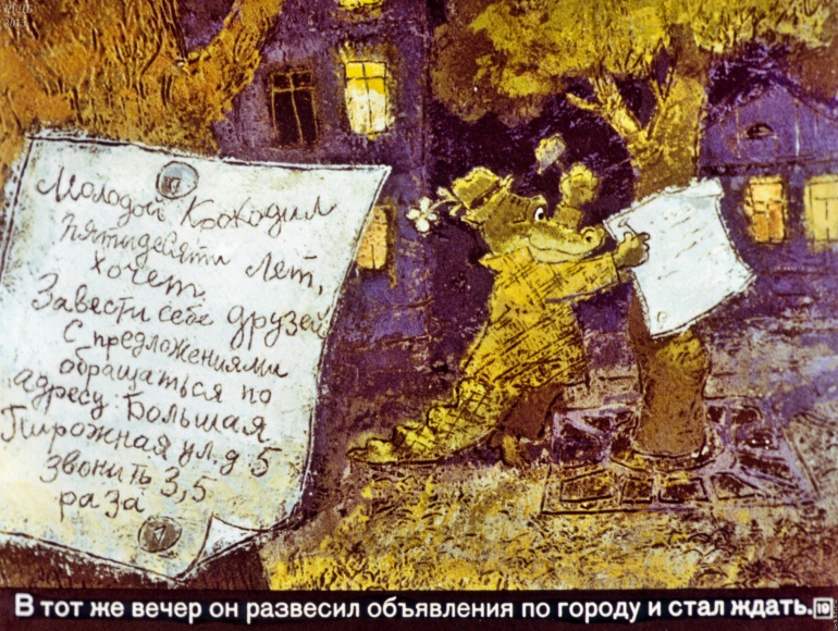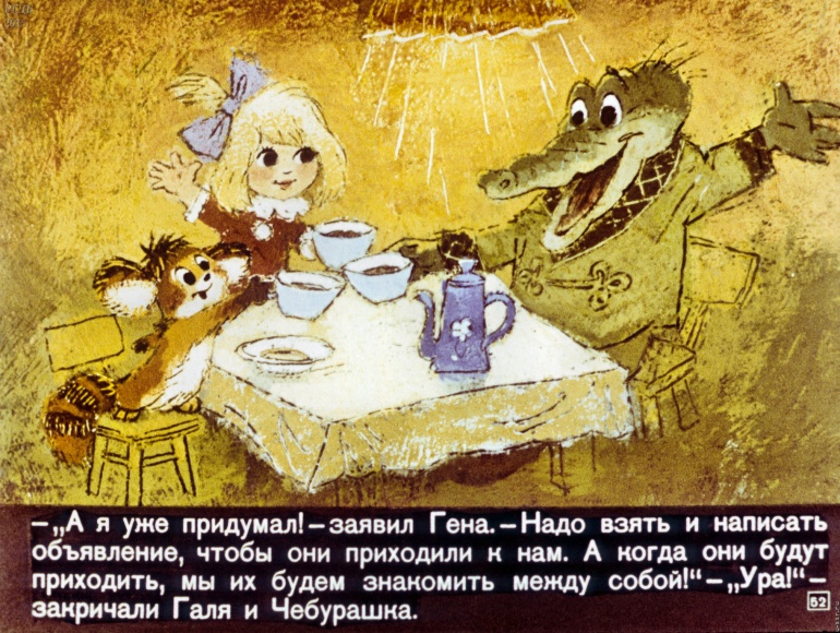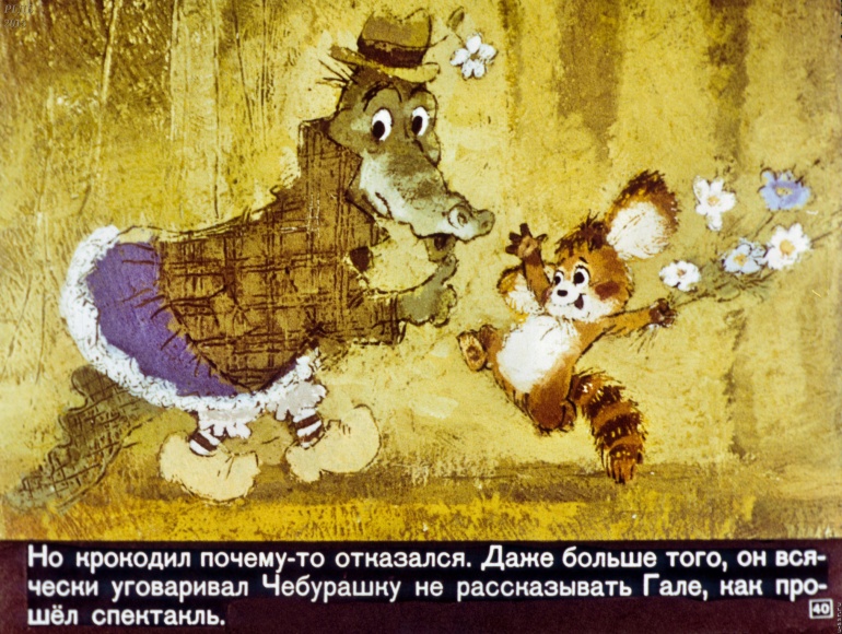 Крокодил Гена и его друзья 5 Категория: ДиафильмыПросмотры: 2 342 Э. Успенский. Диафильм "Крокодил Гена и его друзья". Студия "Диафильм" Госкино СССР, 1969 год. Д-266-69, цветной 0-30 копеек