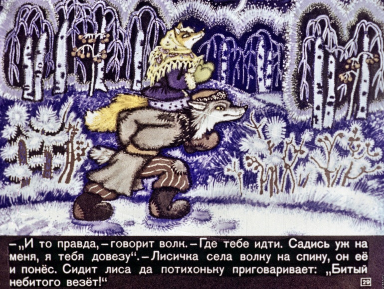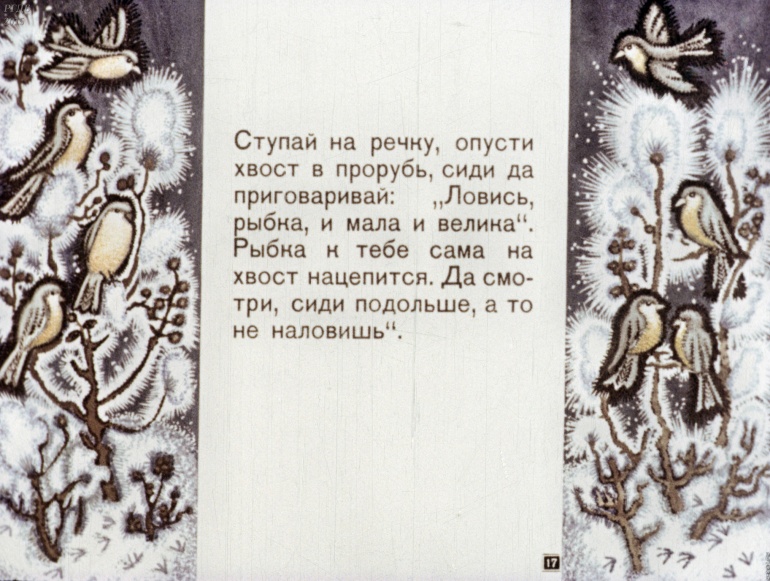 Лисичка-сестричка и Серый волк 2 Категория: ДиафильмыПросмотры: 2 013 Диафильм "Лисичка-сестричка и Серый волк". Русская народная сказкаСтудия "Диафильм" Госкино СССР, 1970 год. Д-188-70, цветной 0-30 копеек