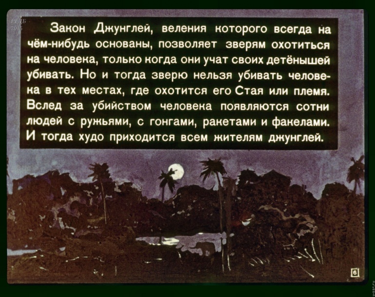 Маугли 5 Категория: ДиафильмыПросмотры: 2 330 Р. Киплинг. Диафильм "Маугли". Студия "Диафильм" Госкино СССР, 1964 год. Д-178-64, цветной 0-30 копеек
