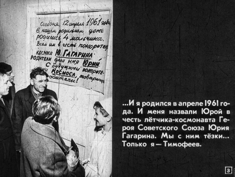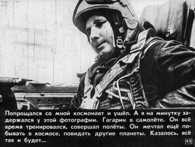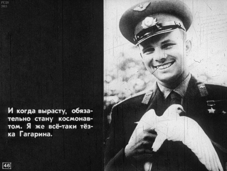 Мой тёзка Юрий Гагарин 0 Категория: ДиафильмыПросмотры: 1 702 Диафильм "Мой тезка Юрий Гагарин". Студия "Диафильм" Госкино СССР, 1971 год. Д-076-71, черно-белый 0-20 копеек