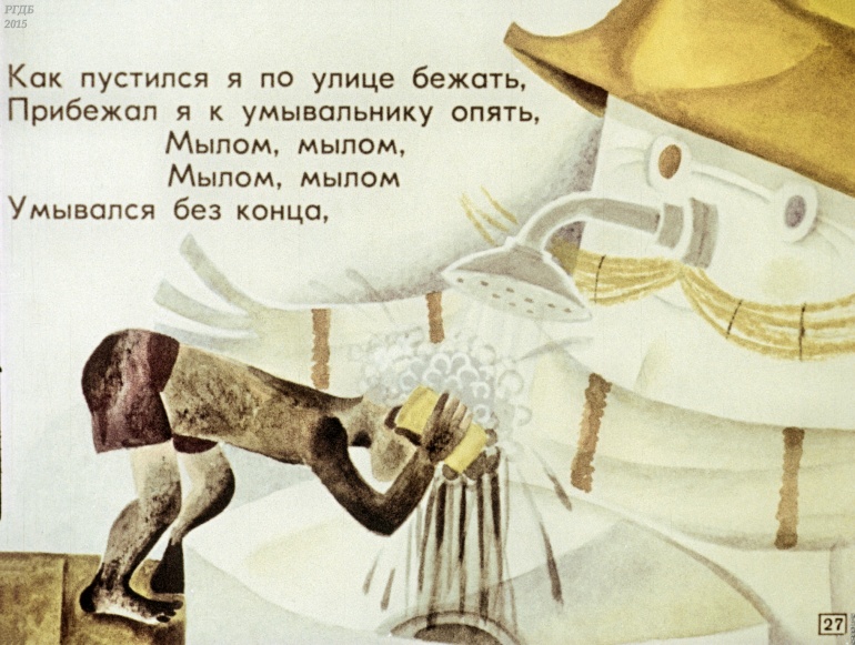 Мойдодыр 4 Категория: ДиафильмыПросмотры: 2 731 К. Чуковский. Диафильм "Мойдодыр". Студия "Диафильм" Госкино СССР, 1969 год. Д-133-69, цветной 0-30 копеек