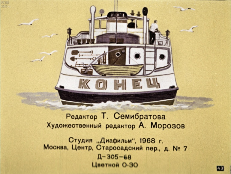 Мы плывем на самоходке 0 Категория: ДиафильмыПросмотры: 1 369 Феликс Лев. Диафильм "Мы плывем на самоходке". Студия "Диафильм" Госкино СССР, 1968 год. Д-305-68, цветной 0-30 копеек