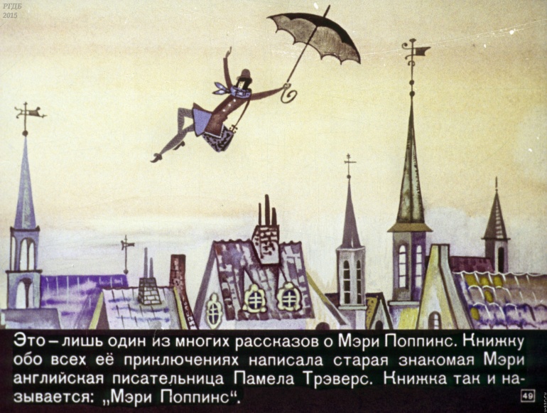 Мэри Поппинс 0 Категория: ДиафильмыПросмотры: 1 856 Диафильм "Мэри Поппинс". Студия "Диафильм" Госкино СССР, 1971 год. Д-217-71, цветной 0-30 копеек