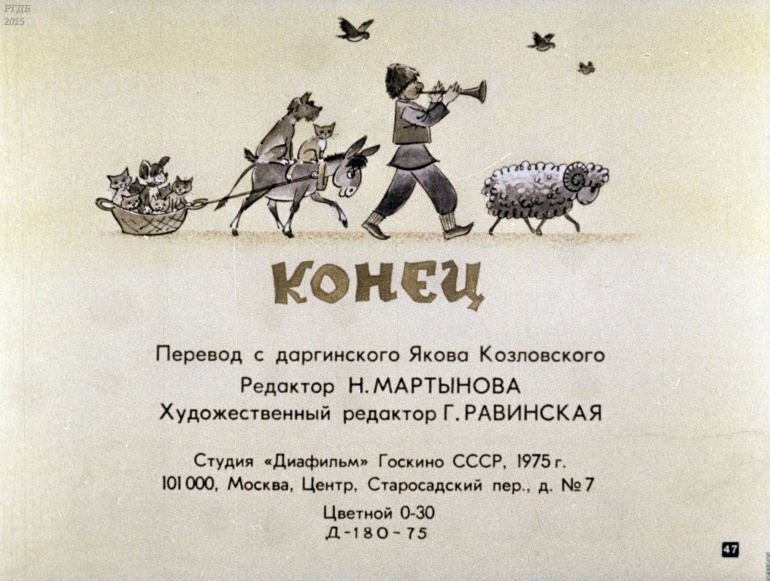 Охотник Муса 0 Категория: ДиафильмыПросмотры: 1 422 Диафильм "Охотник Муса".Студия "Диафильм" Госкино СССР, 1975 год. Д-180-75, цветной 0-30 копеек