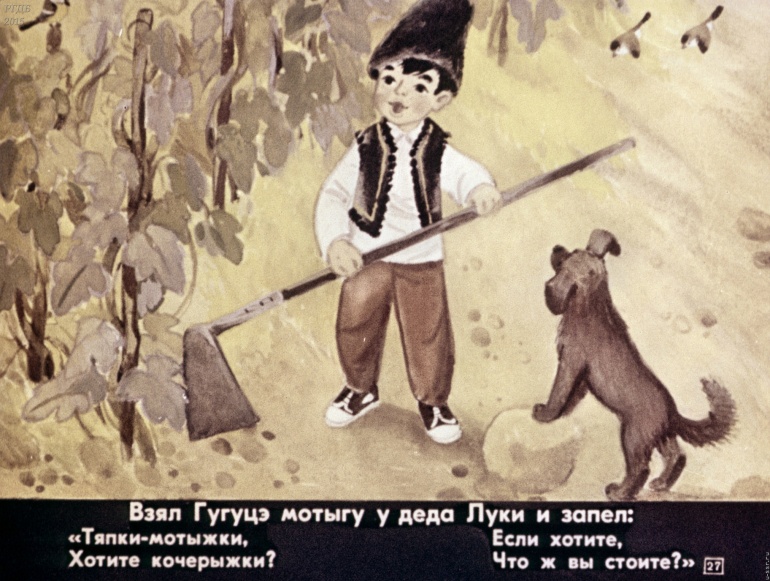 Песенки Гугуцэ 0 Категория: ДиафильмыПросмотры: 1 625 Спиридон Вангели. Диафильм "Песенки Гугуцэ". Студия "Диафильм" Госкино СССР, 1976 год. Д-101-76, цветной 0-30 копеек