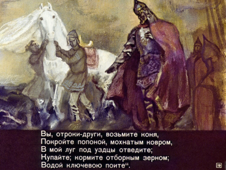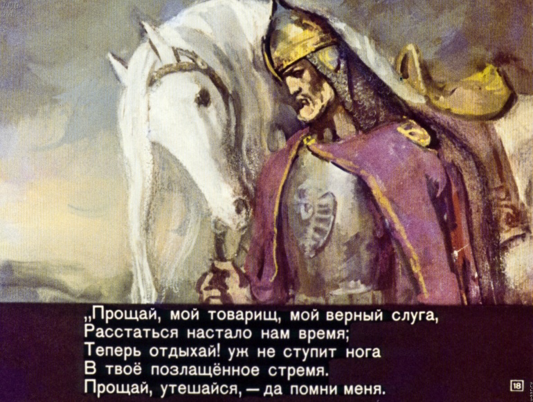 Песнь о вещем Олеге 5 Категория: ДиафильмыПросмотры: 3 000 А. С. Пушкин. Диафильм "Песнь о вещем Олеге".Студия "Диафильм" Госкино СССР, 1972 год. Д-036-73, цветной 0-30 копеек
