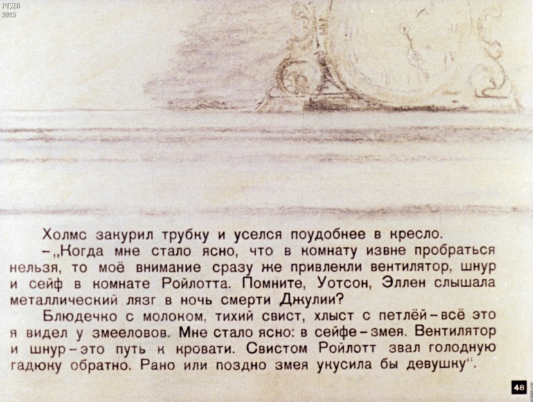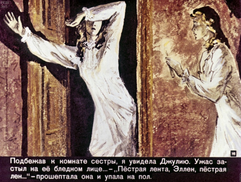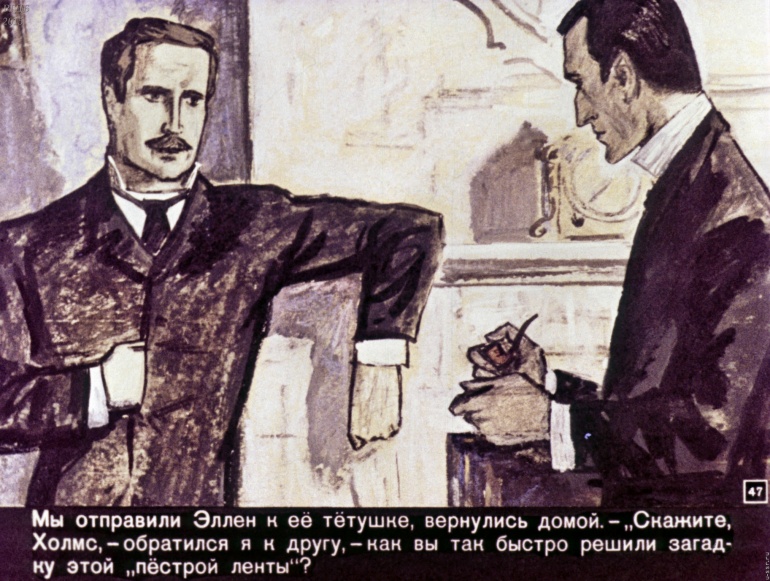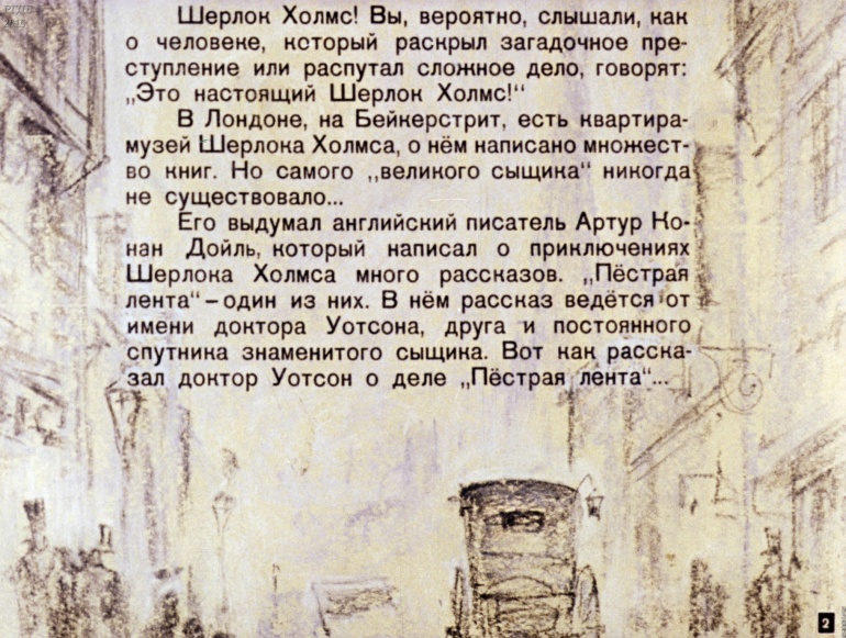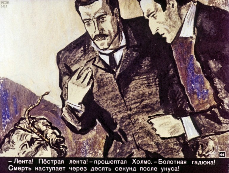 Пестрая лента 0 Категория: ДиафильмыПросмотры: 1 629 А. Конан-Дойль. Диафильм "Пестрая лента". Из записок о Шерлоке ХолмсеСтудия "Диафильм" Госкино СССР, 1964 год. Д-214-64, цветной 0-30 копеек