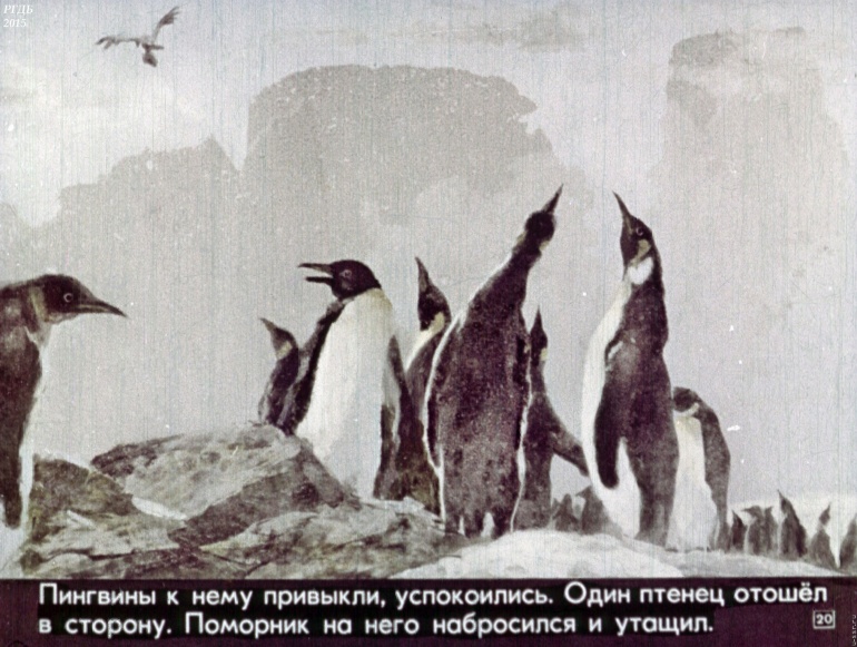 Про пингвинов 1 Категория: ДиафильмыПросмотры: 2 119 Г. Снегирёв. Диафильм "Про пингвинов".Студия "Диафильм" Госкино СССР, 1974 год. Д-255-74, цветной 0-30 копеек