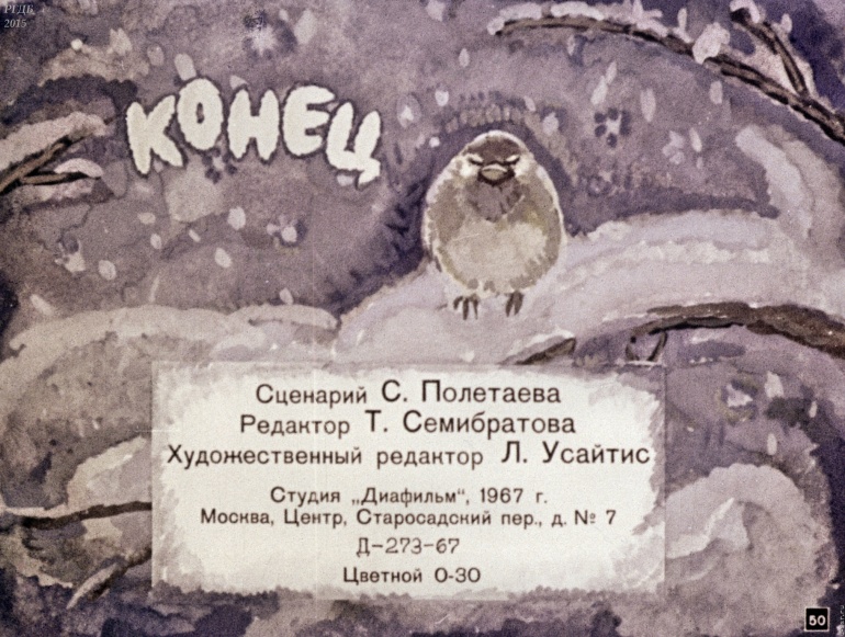 Растрепанный воробей 8 Категория: ДиафильмыПросмотры: 3 472 К. Паустовский. Диафильм "Растрепанный воробей". Студия "Диафильм" Госкино СССР, 1967 год. Д-273-67, цветной 0-30 копеек