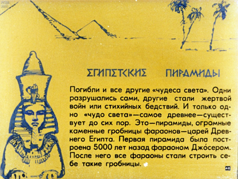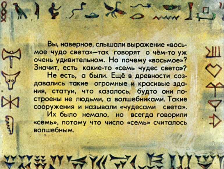 Семь чудес света 2 Категория: ДиафильмыПросмотры: 1 668 Диафильм "Семь чудес света". Студия "Диафильм" Госкино СССР, 1976 год. Д-117-76, цветной 0-30 копеек