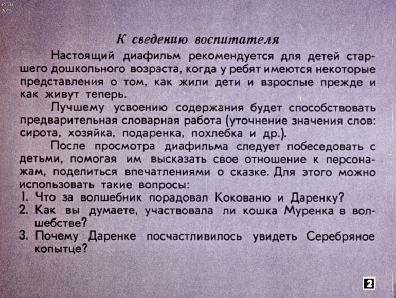 Серебряное копытце 2 Категория: ДиафильмыПросмотры: 3 157 Диафильм "Серебряное копытце". Сказ П. БажоваСтудия "Диафильм" Госкино СССР, 1989 год. Д-013-89, цветной 0-30 копеек