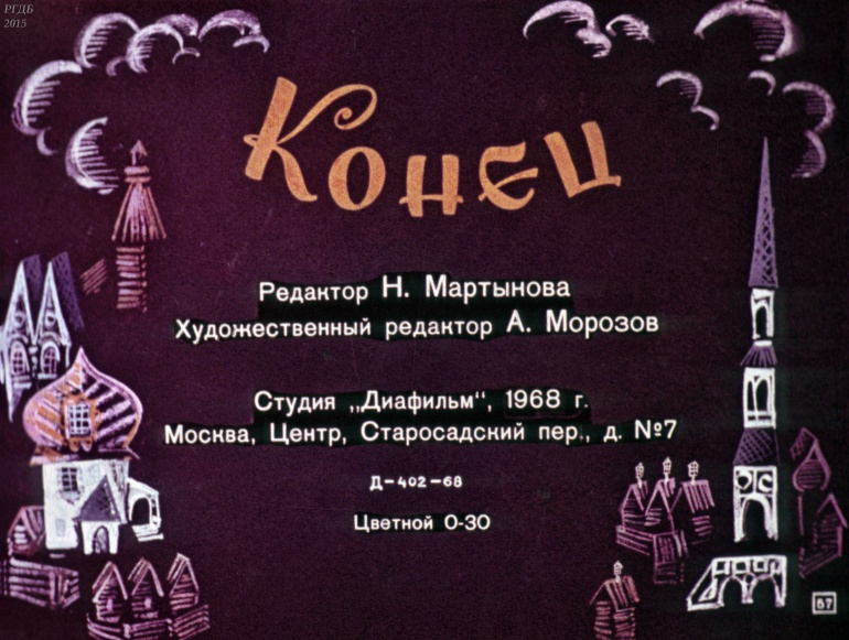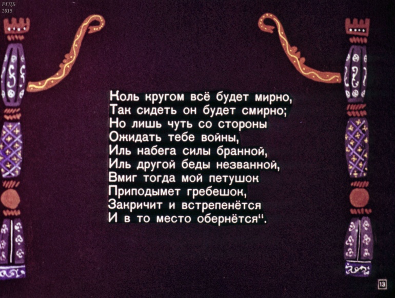 Сказка о золотом петушке 0 Категория: ДиафильмыПросмотры: 2 081 А. С. Пушкин. Диафильм "Сказка о золотом петушке".Студия "Диафильм" Госкино СССР, 1968 год. Д-402-68, цветной 0-30 копеек