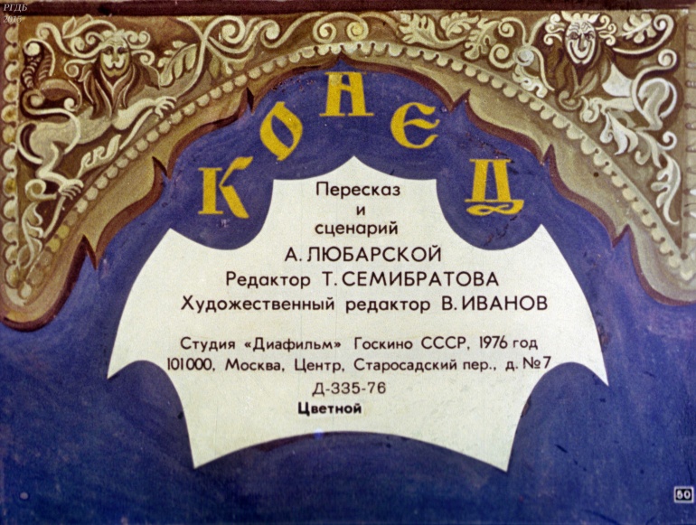 Сказка о морском царе и Настасье Премудрой 0 Категория: ДиафильмыПросмотры: 1 624 Диафильм "Сказка о морском царе и Настасье Премудрой".Студия "Диафильм" Госкино СССР, 1976 год. Д-335-76, цветной 0-30 копеек