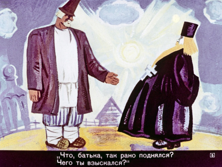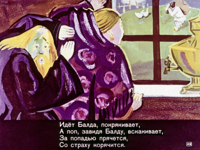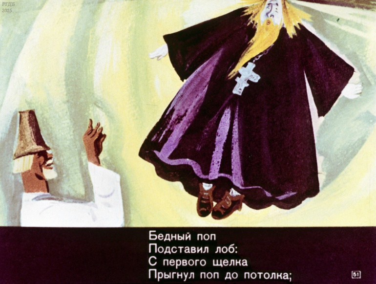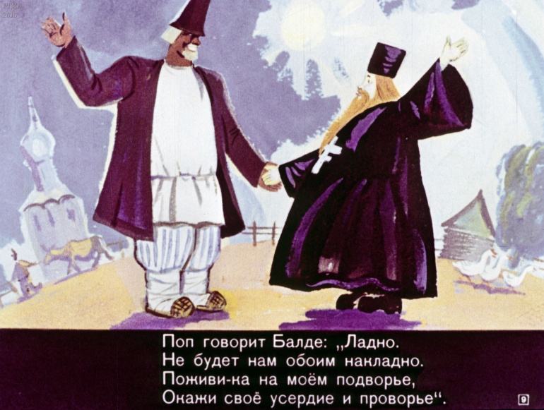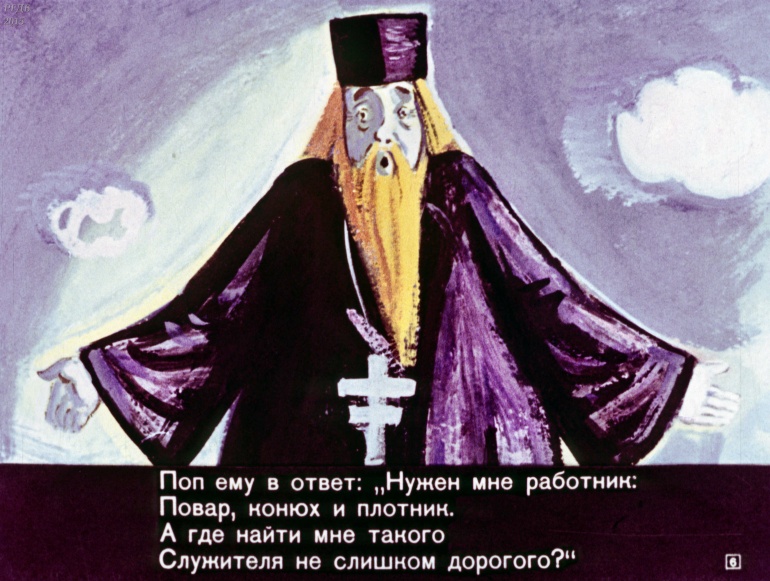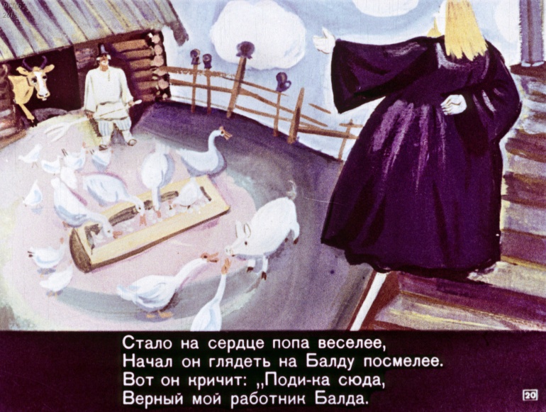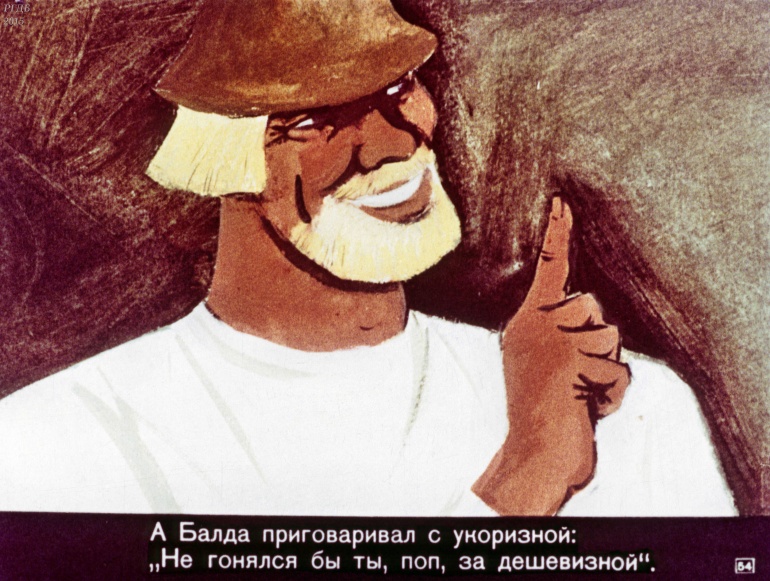 Сказка о попе и работнике его Балде 3 Категория: ДиафильмыПросмотры: 1 752 А. С. Пушкин. Диафильм "Сказка о попе и работнике его Балде".Студия "Диафильм" Госкино СССР, 1968 год. Д-145-68, цветной 0-30 копеек