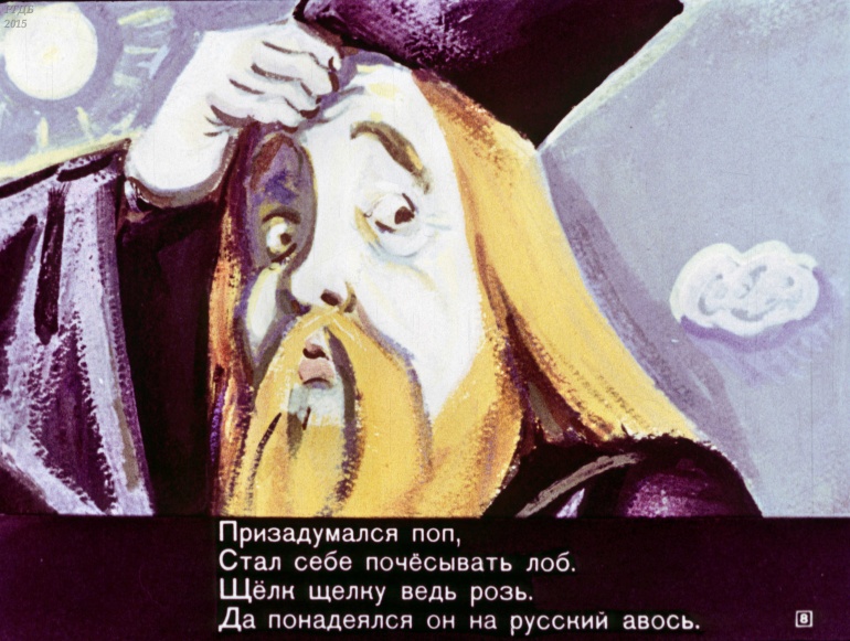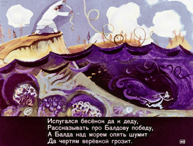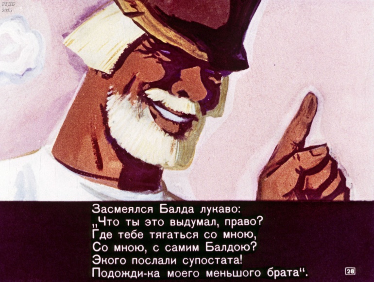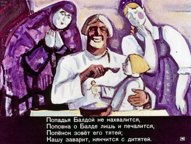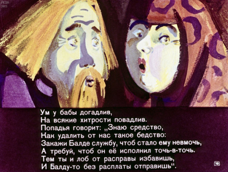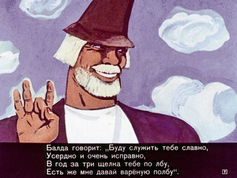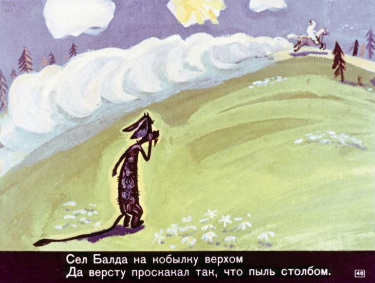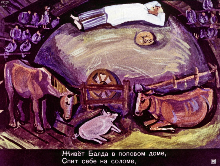 Сказка о попе и работнике его Балде 3 Категория: ДиафильмыПросмотры: 1 752 А. С. Пушкин. Диафильм "Сказка о попе и работнике его Балде".Студия "Диафильм" Госкино СССР, 1968 год. Д-145-68, цветной 0-30 копеек