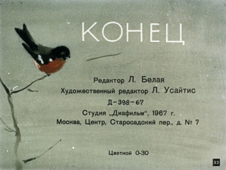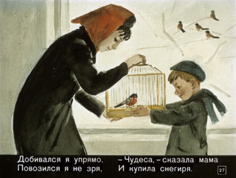 Снегирь 2 Категория: ДиафильмыПросмотры: 1 911 А. Барто. Диафильм "Снегирь".Студия "Диафильм" Госкино СССР, 1967 год. Д-398-67, цветной 0-30 копеек