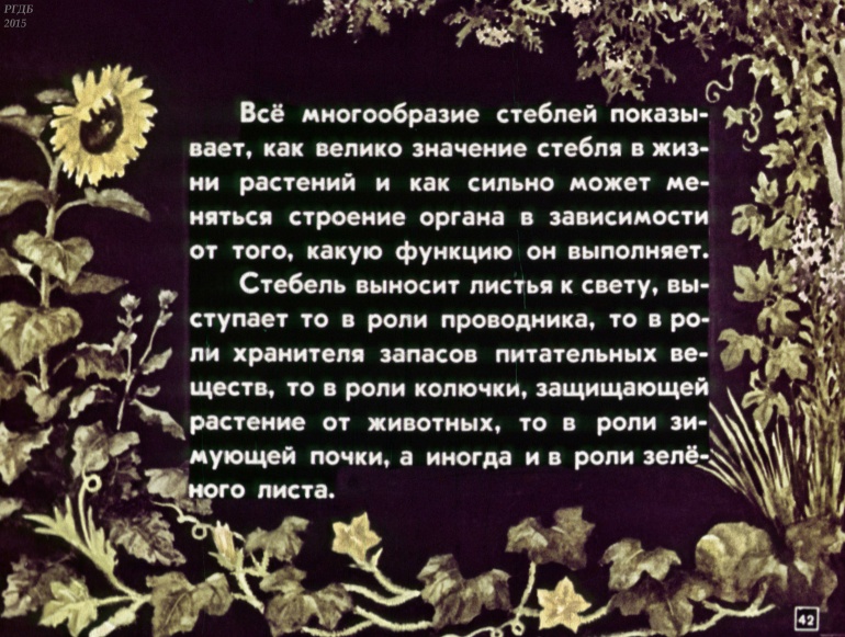 Строение и разнообразие стеблей 0 Категория: ДиафильмыПросмотры: 2 029 Диафильм "Строение и разнообразие стеблей" по ботанике для 5-го классаСтудия "Диафильм" Госкино СССР, 1967 год. Д-288-67, цветной 0-30 копеек