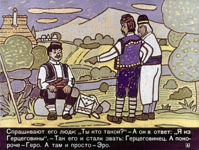 Хитроумный Эро 1 Категория: ДиафильмыПросмотры: 1 445 Диафильм "Хитроумный Эро". Сербская сказкаСтудия "Диафильм" Госкино СССР, 1968 год. Д-365-68, цветной 0-30 копеек
