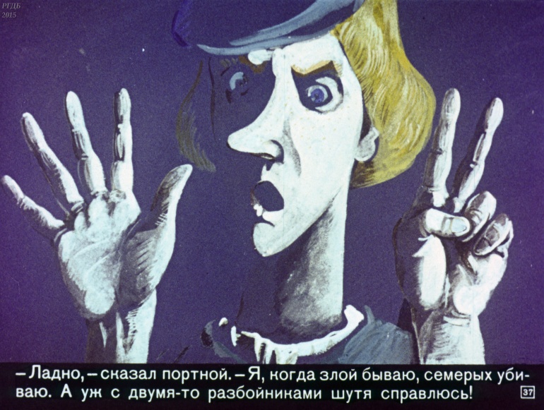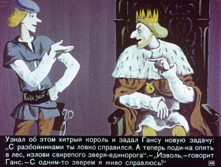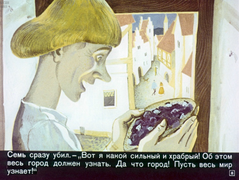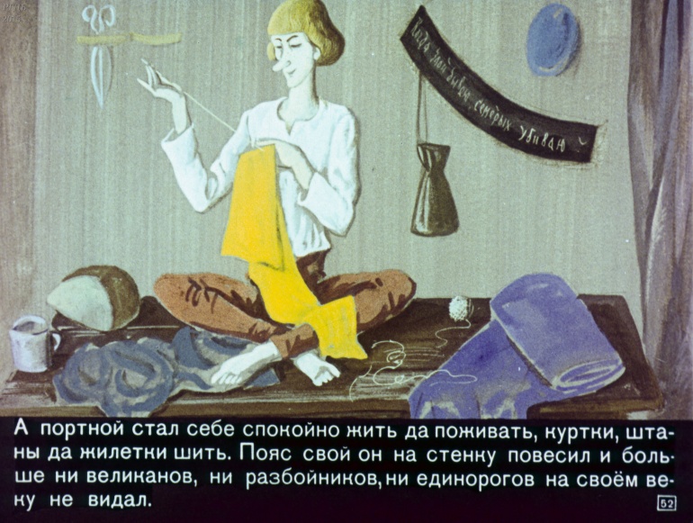 Храбрый портной 0 Категория: ДиафильмыПросмотры: 1 799 Братья Гримм. Диафильм "Храбрый портной".Студия "Диафильм" Госкино СССР, 1971 год. Д-241-71, цветной 0-30 копеек