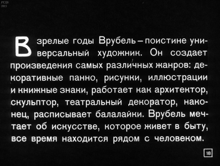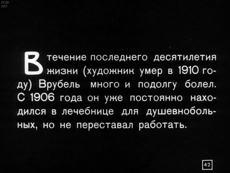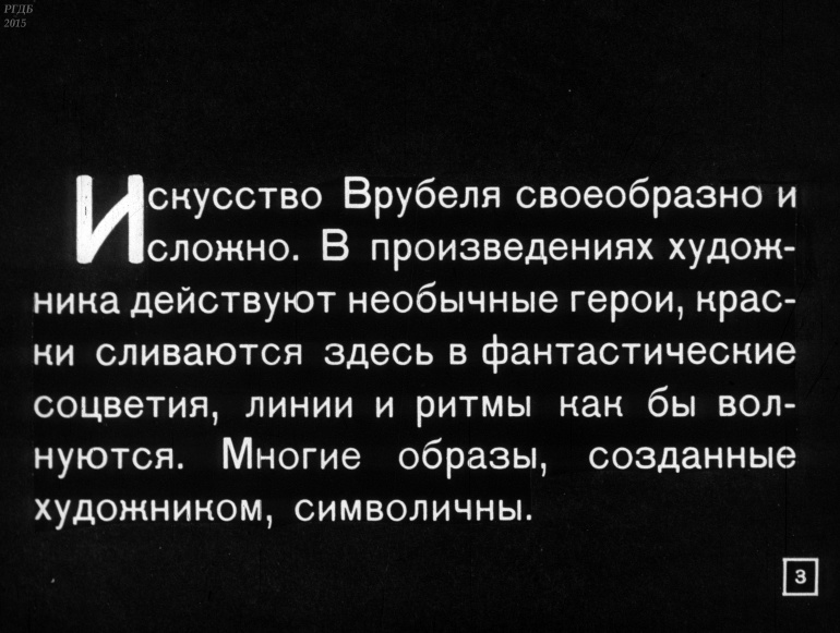 Художник Врубель М. А. 1 Категория: ДиафильмыПросмотры: 1 436 Диафильм "Художник Врубель М. А. 1856-1910 гг".Студия "Диафильм" Госкино СССР, 1963 год. Д-87-63, цветной 0-30 копеек