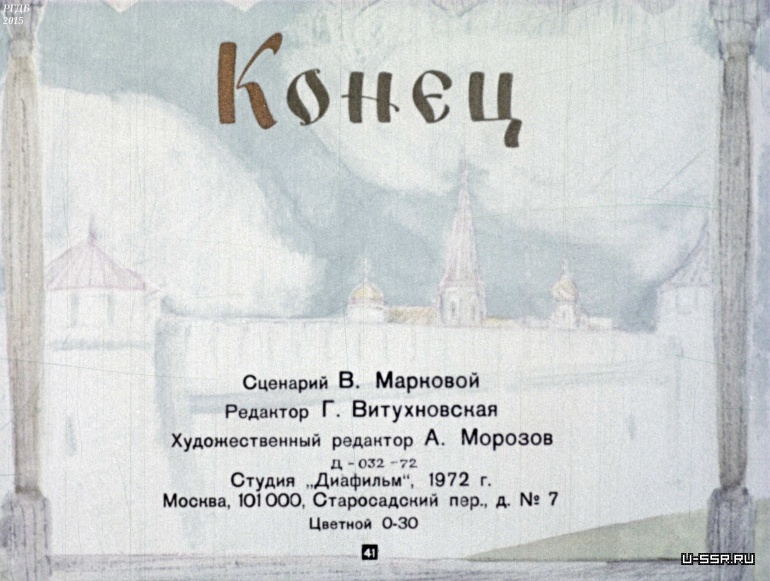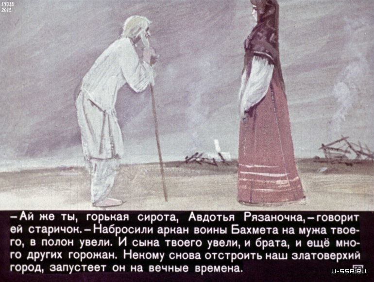 Авдотья Рязаночка 3 Категория: ДиафильмыПросмотры: 2 476 Диафильм "Авдотья Рязаночка".Студия "Диафильм" Госкино СССР, 1972 год. Д-032-72, цветной 0-30 копеек