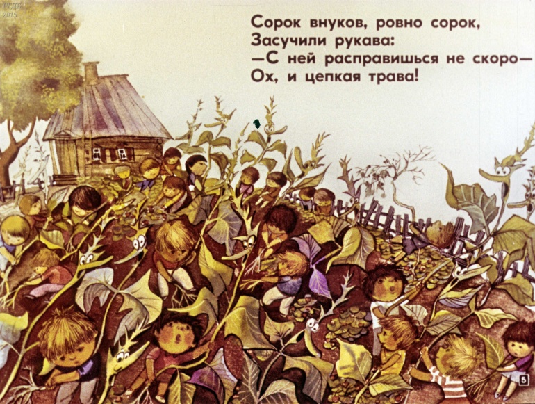 Было у бабушки сорок внучат 0 Категория: ДиафильмыПросмотры: 1 749 Агния Барто. Диафильм "Было у бабушки сорок внучат".Студия "Диафильм" Госкино СССР, 1981 год. Д-013-81, цветной 0-30 копеек