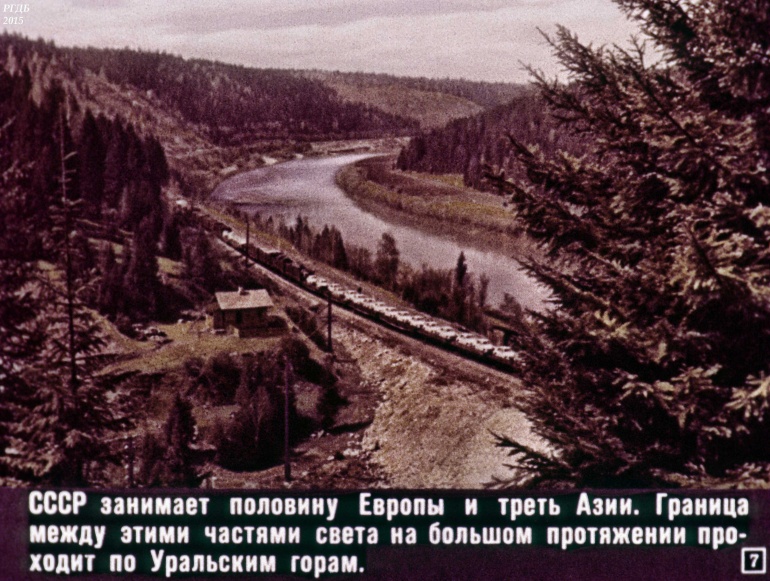СССР занимает половину Европы и треть Азии. Граница между этими частями света на большом протяжении проходит по Уральским горам.![]()