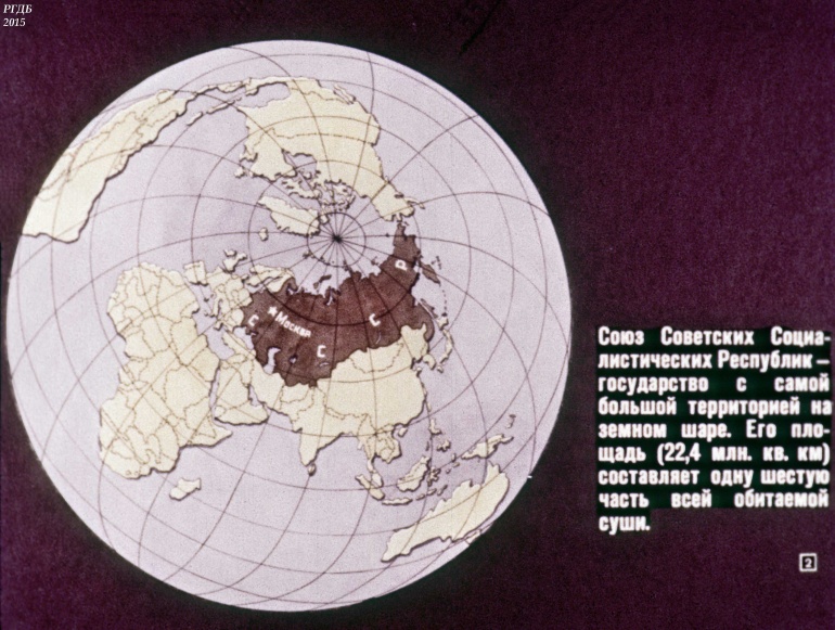 Союз Советских Социалистических Республик - государство с самой большой территорией на земном шаре. Его площадь (22,4 млн. кв. км) составляет одну шестую часть всей обитаемой суши.![]()