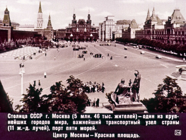 Столица СССР - г. Москва (5 млн. 46 тыс. жителей) - один из крупнейших городов мира, важнейший транспортный узел страны (11 ж.-д. лучей), порт пяти морей.