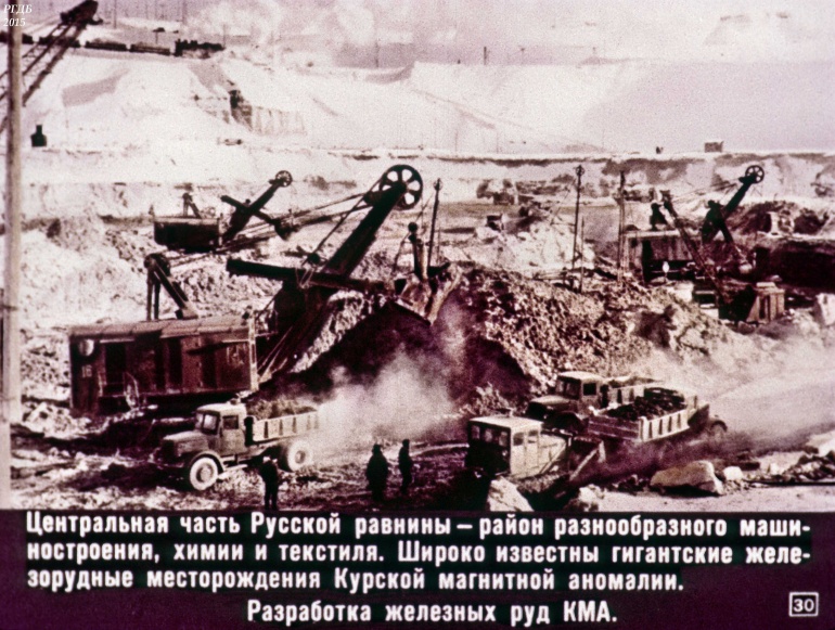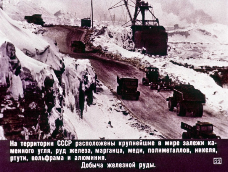 На территории СССР расположены крупнейшие в мире залежи каменного угля, руд железа, марганца, меди, полиметаллов, никеля, ртути, вольфрама и алюминия.