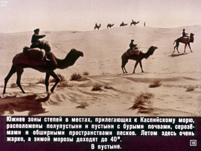 Южнее зоны степей в местах, прилегающих к Каспийскому морю, расположены полупустыни и пустыни с бурыми почвами, серозёмами и обширными пространствами песков. Летом здесь очень жарко, а зимой морозы доходят до -40.