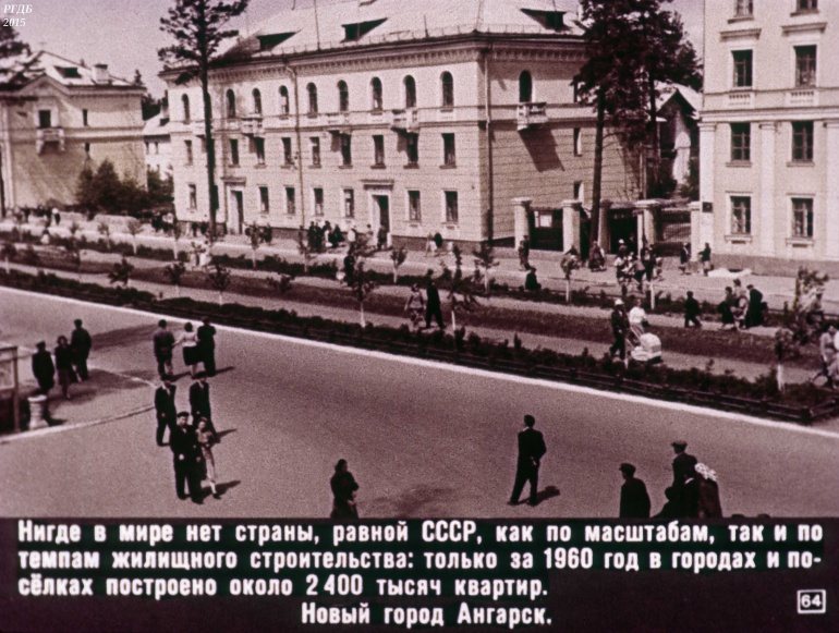 Нигде в мире нет страны, равной СССР, как по масштабам, так и по темпам жилищного строительства: только за 1960 год в городах и посёлках построено около 2400 тысяч квартир.